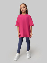 Леггинсы для девочки облегающие из набивного трикотажного полотна длинные с боковыми швами. По спинке - накладные карманы. По переду изделия- имитация гульфика и боковых карманов. Верхний срез изделия обработан широкой эластичной тесьмой швом в подгибку. По низу изделия-цельнокроеные манжеты (отвороты).
