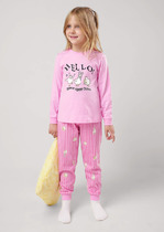 Трикотажная пижама из натурального хлопка. Футболка с короткими втачными рукавами. У футболки рукава и низ изделия обработаны микрооверлоком У брюк в комплекте мягкий, эластичный пояс на резинке. Оригинальная набивка выполнена из стойких, гипоаллергенных текстильных красителей. Комплект сохраняет цвет и форму после многократных стирок. Все трикотажные полотна производятся в соответсвии с нормами Швейцарского сертификата ЭкоТекс.