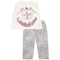 Трикотажная пижама из натурального хлопка. Джемпер с длинными втачными рукавами и прямые брюки с эластичной резинкой в поясе. Оригинальные набивка и принт выполнены из стойких гипоаллергенных текстильных гипоаллергенных красителей. Изделие сохраняет цвет и форму после многократных стирок. Все трикотажные полотна производятся в соответсвии с нормами швейцарского сертификата ЭкоТекс.