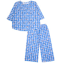 Трикотажная пижама из натурального хлопка. Футболка с короткими втачными рукавами изготовлена из эластичного трикотажа в рубчик. Брюки с эластичной резинкой в поясе выполнены из гладкого трикотажа супрем. Оригинальная набивка выполнена из стойких текстильных гипоаллергенных красителей. Изделие сохраняет цвет и форму после многократных стирок. Все трикотажные полотна производятся в соответсвии с нормами швейцарского сертификата ЭкоТекс.
