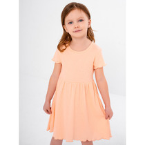Платье для девочек. Свободного силуэта, отрезное по низу, с оборкой. Горловина и проймы окантованы бейкой из рибаны.