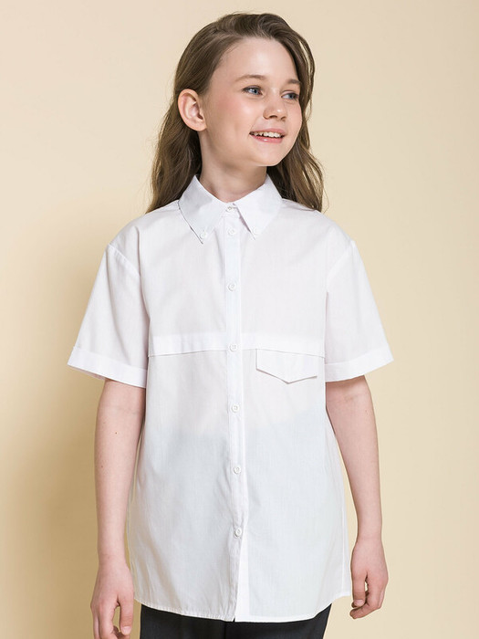 Школьная блузка прямого силуэта для девочки. Преобладающий в составе ткани хлопок делает эту модель мягкой, дышащей и комфортной для ребёнка. Благодаря полиэстеру изделие сохраняет форму и превосходный внешний вид. На спинке кокетка с защипом - свобода движения, комфорт в течение дня. По переду под кокеткой имитация кармана в виде декоративного клапана – актуально и стильно. Воротник украшают декоративные пуговицы — изюминка модели. Рукав с отворотом - оригинально. Практичная и универсальная модель благодаря лаконичному дизайну великолепно сочетается с различными брюками и юбками. Отличный вариант детской блузки для школы.