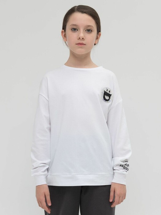 Мягкий, приятный к телу трикотажный джемпер для девочки. Удобный и свободный, ведь прямой силуэт и спущенное плечо не стесняют движения. Белый цвет изделия не боится стирок и ежедневной носки. Хорошо сочетается с любыми брюками или юбкой.