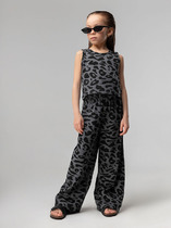 Комплект для девочки (кроп-топ и кюлоты), в котором собраны все самые актуальные тренды. Кроп-топ оверсайз-силуэта с сильно спущенным плечом дополнен утяжками по низу, с помощью которых можно регулировать объём и менять силуэт изделия. Брюки на широкой резинке с внутренней регулировкой объема шнуром. Благодаря особенностям кроя костюм долго будет "расти" вместе с ребенком. Комплект выполнен из трикотажного полотна с модной "вафельной" текстурой. В составе ткани преобладает хлопок, поэтому модель комфортная, приятная на ощупь, в ней не будет жарко летом. Эластан в составе ткани помогает изделию сохранять форму. Ткань проста в уходе. Изюминка топа — лаконичная вышивка в виде трёх цветков. Комплект идеально сядет на девочку любой фигуры, можно покупать без примерки. Костюм для настоящих модниц, в нем каждая девочка будет выглядеть стильно и эффектно.