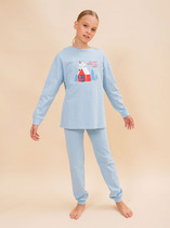 Детская пижама – комплект бренда Pelican, состоящий из лонгслива и брюк. Комфортный сон очень важен для роста и восстановления организма ребенка, поэтому пижама ребенку должна обеспечивать максимальный комфорт и защиту. Пижама для девочки создана из натурального хлопка, сохраняет тепло, гигроскопична, впитывает влагу. Материал позволяет коже ребенка дышать, мягкая резинка брюк не стягивает. Изделие после стирки не садится, не растягивается, не линяет. Джемпер с круглым вырезом горловины, спущенным рукавом. Брюки прямые, на резинке. Ровные мягкие швы, отделка по горловине и манжеты на рукавах и низу брюк придают пижаме для детей лаконичный образ, модное исполнение и нарядность. Широкая размерная сетка позволяет подобрать оптимальный размер как для малыша, так и подростка. Эта пижама из трикотажа уютная и удобная. Она обязательно понравится ребенку и подарит хорошее настроение дочке или близкому человеку. Нейтральный цвет, который использован в данной модели подойдет и в качестве изделия пижама для мальчика. Цвет комплекта детской пижамы для девочки – однотонный голубой - свитшот с принтом по мотивам уютной зимы и надписью «The moment. Hot chocolate for good mood» (Момент. Горячий шоколад для хорошего настроения), брюки пижамы – в тон и составляют удачный образ. Модель из зимней коллекции сочетается с носками с рисунком голубого цвета. Преподнести подарок ребенку на любой праздник – Новый год, Рождество, день рождения или без повода – приятно и легко. Оригинально можно составить образы с пижамой для девочки со штанами - для детской, семейной фотосессии, если подобрать модели из коллекции Пеликан и порадовать тем самым себя и своих близких.