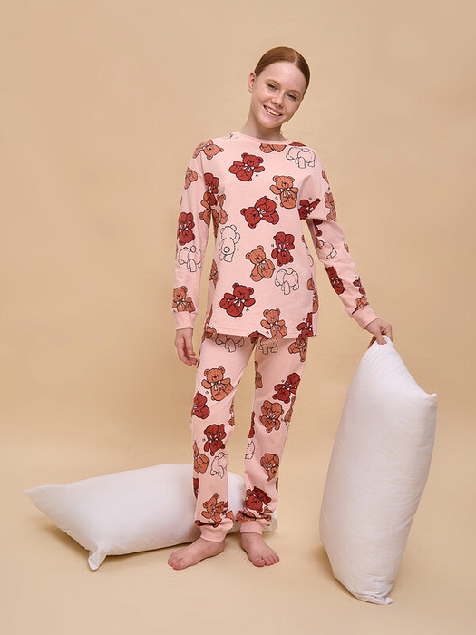 Детская пижама для девочки. Модель выполнена из 100% хлопка — идеальный вариант для детской пижамы. Комплект для сна мягкий, гипоаллергенный и хорошо пропускает воздух. В хлопковой пижаме ребёнку будет тепло, даже если он раскроется во время сна. Всё это способствует комфортному и качественному сну. Джемпер и брюки умеренного объёма, плечо немного спущено, рукава широкие и свободные — в пижаме очень удобно спать. В поясе и по низу брюк мягкие и широкие резинки — не перекручиваются и не давят. Манжеты и отделка горловины из эластичной рибаны — они не растягиваются, пижаму удобно надевать и снимать. Хлопковая пижама украшена милым сплошным принтом в виде плюшевых медвежат — понравится любой девочке. Детская пижама неприхотлива в уходе. Принт эластичный и прочный, легко переносит частые стирки. Детская пижама с брюками подходит для сна как дома, так и в детском саду — отличный выбор для вашего ребёнка! Помните о правильном уходе за изделием: рекомендуется стирать при температуре не выше 30 °C, без предварительного замачивания, с изнанки. Это поможет сохранить качество и цвет пижамы на длительное время.