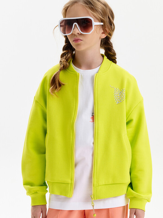 Толстовка oversize для девочки. Модель средней длины из мягкого хлопкового футера, плотностью 342 гр/кв м. Свободный крой с объёмом по линии груди и низа, мягкое спущенное плечо. Застёжка на центральную молнию. Узкий воротник-стойка и плотные манжеты на рукавах и по низу изделия из эластичной рибаны создают стильную имитацию бомбера. По бокам — удобные прорезные карманы с листочки. Перевод: ЭТО СДЕЛАНО ПРОСТО ДЛЯ РАЗВЛЕЧЕНИЯ (ПО ФАНУ, ПО ПРИКОЛУ - СЛЕНГ)