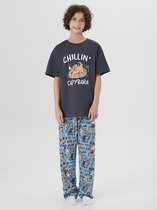 Стильный хлопковый комплект для дома подарит тебе уют и комфорт! Футболка базовой конструкции с эластичной горловиной и тематичным принтом. Набивные брюки с эластичными манжетами, резинка по поясу для комфортной посадки.Уют и комфорт на каждый день!
