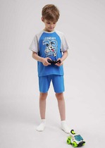 Комплект хлопковой пижамы из футболки и шорт. Футболка свободного кроя дополнена эластичной горловиной и стильным принтом. Шорты среднего объема, эластичный пояс обеспечит комфорт и идеальную посадку.