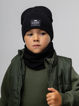 Комплект детский: шапка и снуд из полушерсти. Тёплая вязаная шапка с отворотом на подкладе из флиса. Украшена нашивкой из искусственной кожи. Узкий снуд без оборотов вокруг шеи. Изделие сохраняет форму и стойкий цвет после многочисленных стирок.