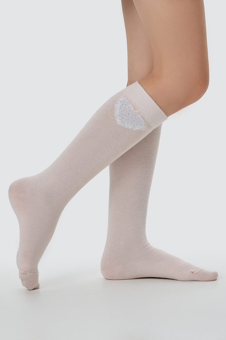 Рис.3335 Детские однотонные гольфы c рисунком в виде сердечка и печатью стразами.