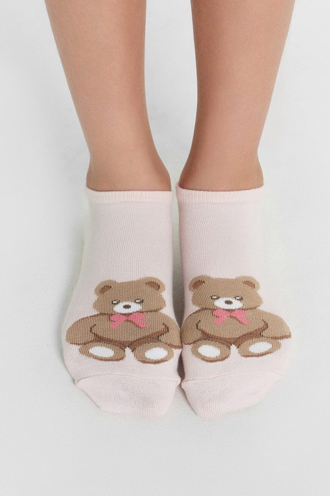 рис.2788 Детский укороченный носок с рисунком в виде медведя.