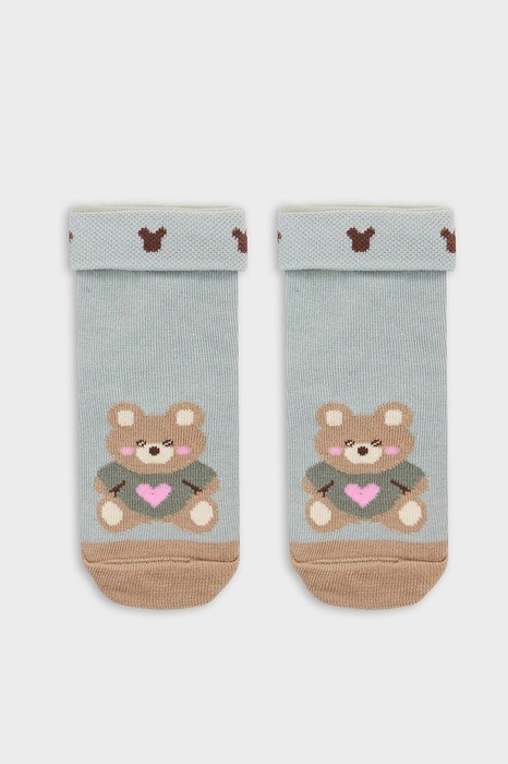 Детские носки для самых маленьких с отворотом на бортике, что добавляет им уюта и комфорта. Выполнены из высококачественного гребенного хлопка. Цветной мысок делает эти носки яркими и забавными, а рисунок в виде медведя непременно понравится вашему ребенку. Они не только согреют ножки вашего малыша, но и подарят ему радость и веселье каждый день. Идеально подойдут для повседневного использования и станут отличным дополнением к любому наряду. Рекомендуем!