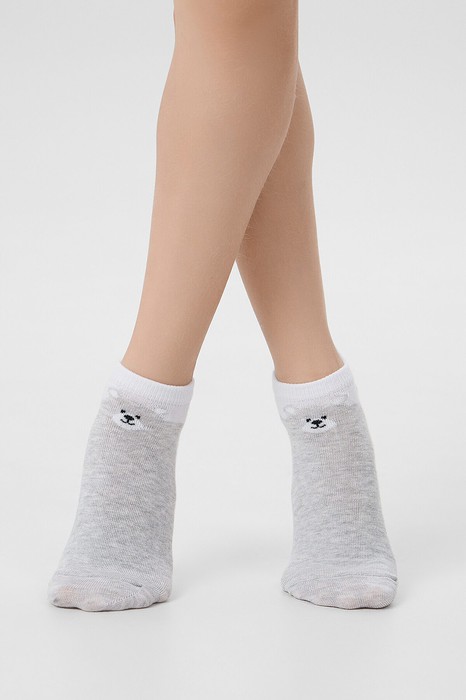 рис.3181 Детский укороченный носок с рисунком в виде двух цветов основы и мишки.