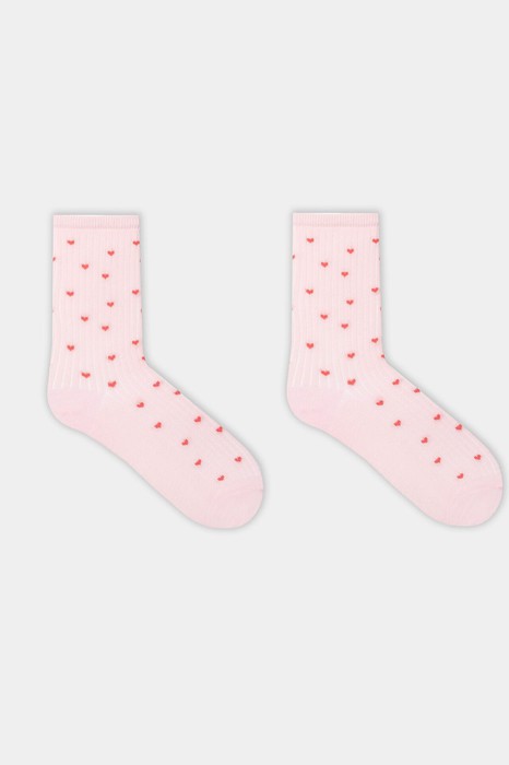 рис.3165 Детские классические носки выполненных перекидным переплетением (лапша) с рисунком в виде мелких сердечек.