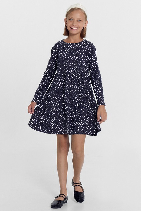 Это прелестное платье с отрезными воланами станет прекрасным дополнением к гардеробу вашей девочки. Выполненное из высококачественного 100% хлопка, оно обеспечивает исключительный комфорт и свободу движений, позволяя коже ребенка дышать. Изящный, полуприлегающий силуэт платья создаст женственный и элегантный образ. Длинные рукава и круглый вырез горловины гарантируют свободу движений. Оригинальный принт придает модели особенный шарм и индивидуальность. Благодаря продуманному крою и качественному пошиву, платье идеально садится по фигуре, обеспечивая комфорт и свободу на протяжении всего дня. Оно одинаково уместно как для повседневных прогулок, так и для праздничных мероприятий. Сочетайте его с колготками, кардиганами и туфельками для создания стильных образов!