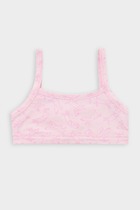 Хлопковое бюстье прилегающего силуэта для девочек. Выполнено из легкой и приятной к телу трикотажной рибаны. Вырез горловины и проймы окантованы эластичной тесьмой. На бретелях есть кольца-регуляторы. По нижнему краю бюстье расположена удобная и стильная жаккардовая тесьма. Идеально!