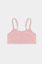 Топ для девочек прилегающего силуэта. Горловина круглая. Проймы и горловина окантованы бейкой из основного полотна. Низ изделия обработан швом в подгибку.