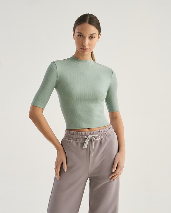 Укороченная футболка, облегающего силуэта. Притачная стойка.