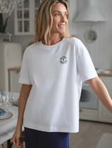 Boyfriend крой, укрепление по горловине спинки, круглый вырез. Горловина рибана. Отстрочка по горловине переда
