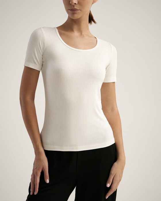 Укороченная футболка, облегающего силуэта. Втачной рукав. Горловина окантована.