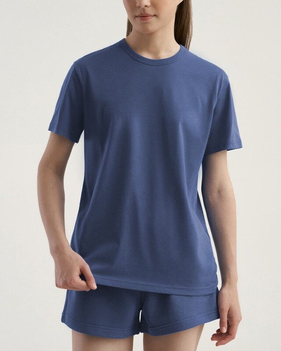 Boyfriend крой, укрепление по горловине спинки, круглый вырез. Горловина рибана. Отстрочка по горловине переда