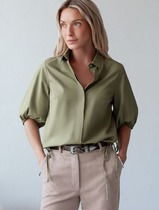 Укороченная футболка, спущенное плечо.Укрепление плечевых швов и шва горловины бейкой из основной ткани. Горловина из рибаны.