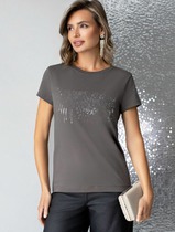 21.04 Vilatte Нарядная футболка с принтом фольгой из премиального хлопка с эласт