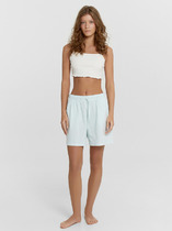 Шорты женские с заниженной талией. Карманы в боковом шве. Пояс отстроченный с резинкой и шнурком внутри.