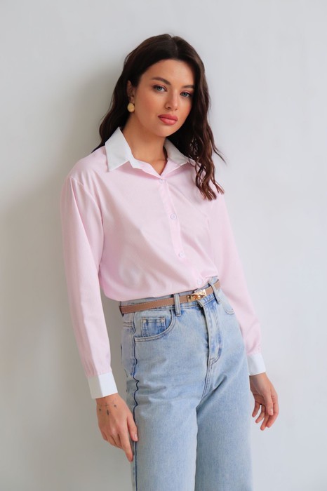 Совместные покупки Челябинск Женская одежда Кофты, кардиганы — 14586 Рубашка розовая в полоску с белым воротничком