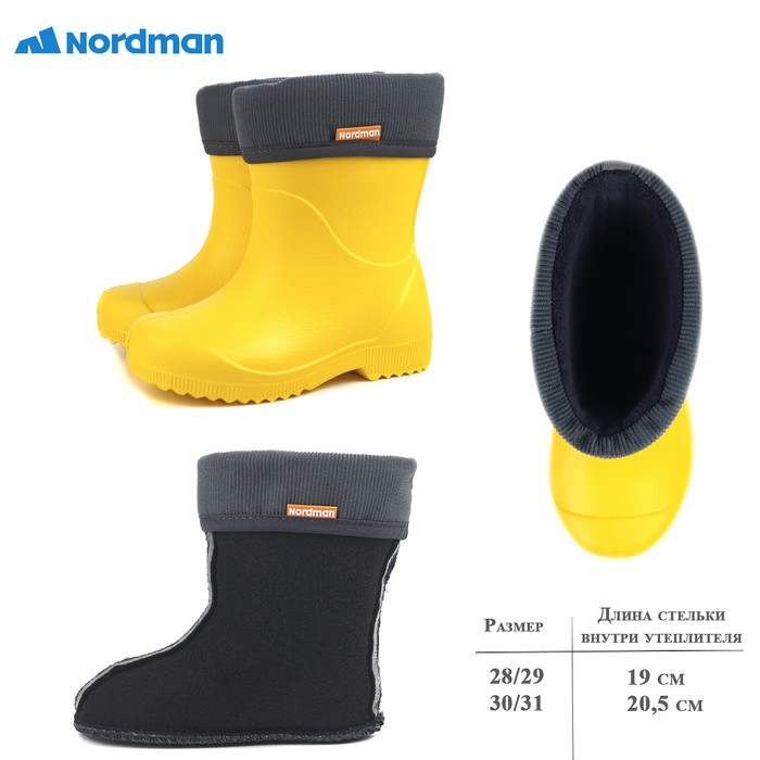Детские сапоги из ЭВА Nordman Jet (с флисовым вкладышем) отличная альтернатива традиционным резиновым сапогам. Вкладыш легко вынимается. Они такие же водонепроницаемые, но гораздо теплее и легче. Даже без утепляющего вкладыша эти сапоги можно носить при околонулевой температуре.