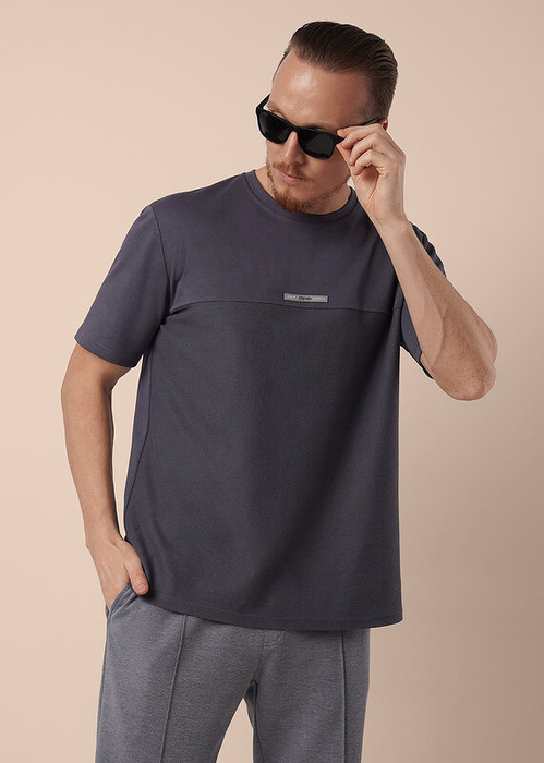 Футболка увеличенного обьема из комбинированной ткани: фактурное полотно и гладь. Интересное звучание модели придаёт дизайнерская нашивка спереди. Такая модель разнообразит любой образ и прекрасно подойдёт к спортивным брюкам или джинсам.