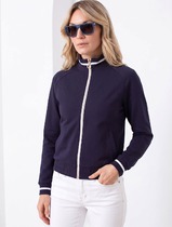 Джемпер умеренного объема из хлопкового трикотажного полотна -рибана. Втачной короткий рукав. Округлая горловина с окантовкой.