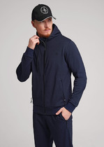 Куртка мужская с застежкой-молнией по переду на капюшоне из плотного пике. Рукава втачные с манжетой, по низу пояс. На капюшоне люверсы со шнуром и наконечниками. Для функциональности и удобства спереди карманы на молнии с тесьмой.
