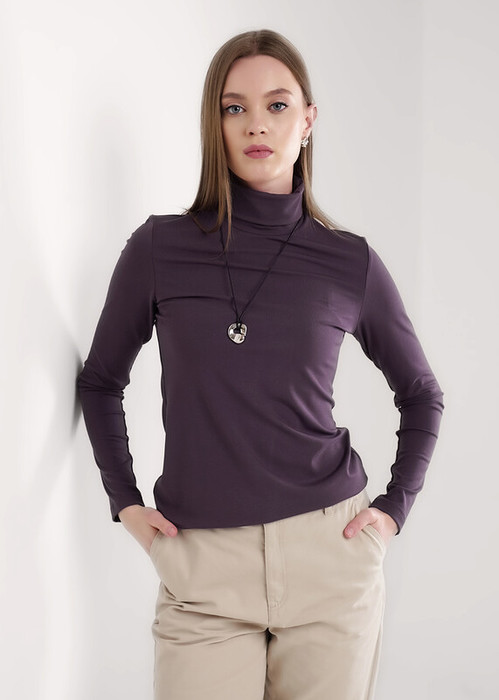 Водолазка из трикотажного полотна рибана с вискозой. Длинный втачной рукав. По горловине стойка.