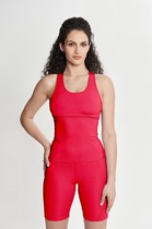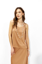 Майка из кашкорсе, облегающая с отстроченными рельефами. Горловина и проймы окантованы основной тканью