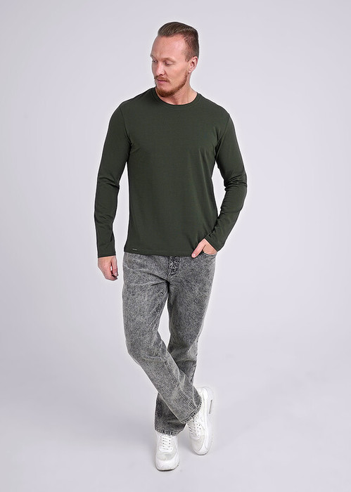 Джемпер прямого силуэта, длинный рукав, круглый вырез горловины обработан обтачкой. Изделие выполнено из натурального полотна с добавлением эластана для удобства ношения.