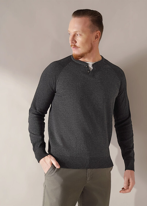 Джемпер мужской из смесовой хлопковой пряжи с длинным рукавом, планкой с иммитацией двойной горловины. Отличное решение на холодное время года. Данный джемпер можно комбинировать с брюками или джинсами. Прекрасно подойдёт для похода на работу.