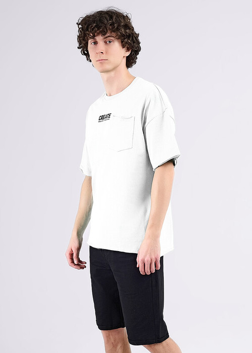 Мужская футболка oversize из дышащего хлопкового полотна.Модель не сковывает движение, придает удобство и комфорт. Изделие дополнено фигурным карманом, а так же шрифтовым принтом. Отличный вариант для прогулок и встреч с друзьями.