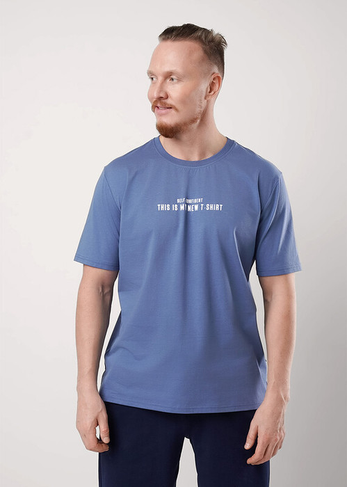 Футболка свободного кроя с круглым вырезом горловины и коротким рукавом. Модель выполнена из трикотажного хлопкового полотна. Изделие дополнено текстовым принтом. Универсальная вещь мужского гардероба на каждый день.