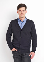 Вязаный базовый кардиган из 100% хлопка выполнен гладьевым переплетением, с V-образным вырезом на пуговицах. Имеется металлический логотип. Модель отлично подойдет для офиса.