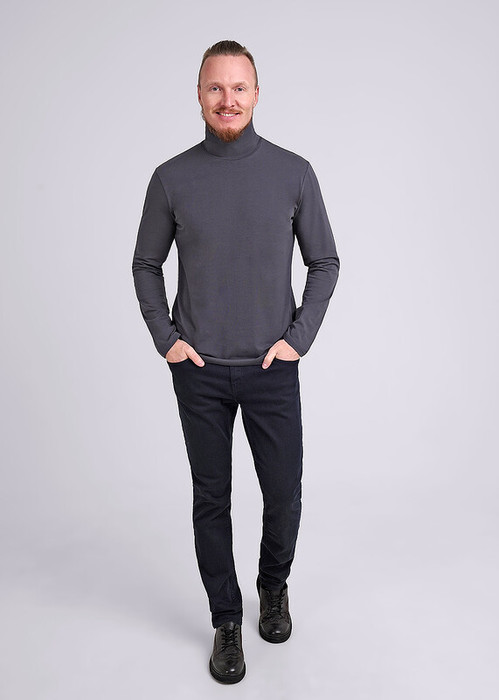 Базовый мужской лонгслив с длинным рукавом на воротнике стойке с загибом. Выполнен из дышащего хлопкового полотна. Лонгслив можно скомбинировать с брюками или джинсами. Отличное решение для похода на работу или встречи с друзьями.