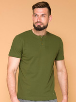 Фуфайка с коротким рукавом среднего объема, круглым вырезом горловины, которая оформлена обтачкой из рибаны, выполненная из набивного полотна.