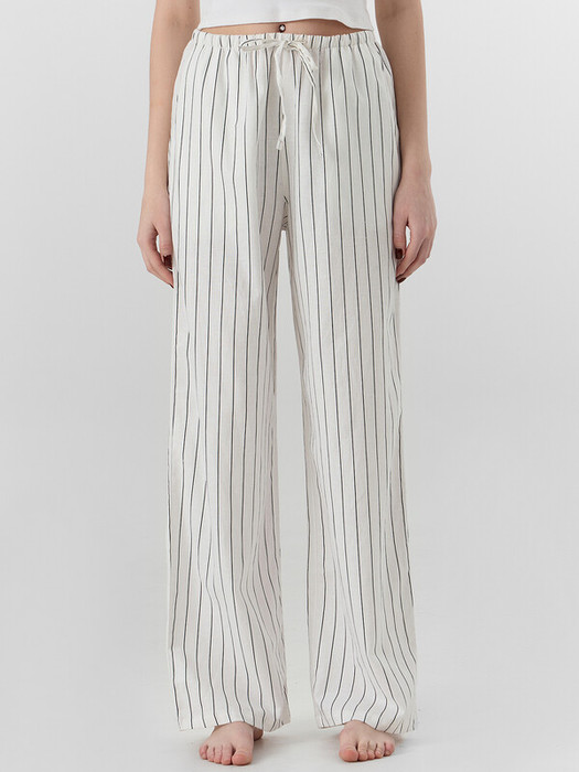 Классический дизайн в полоску и светлый цвет делают эти брюки универсальным элементом домашнего гардероба. Они легко комбинируются с различными топами, футболками или рубашками, позволяя создавать стильные и комфортные образы для расслабленных дней.