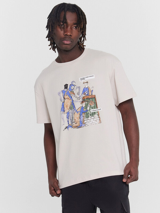 Стильная мужская футболка свободного кроя, выполненная из хлопковой кулирки. Этот материал отличается мягкостью, дышащими свойствами и гипоаллергенностью, что делает модель особенно комфортной для ежедневного ношения. Футболка с круглой горловиной и короткими рукавами со спущенной линией плеча обеспечивает максимальную свободу движений и удобство. Она станет отличным дополнением вашего гардероба, сочетая в себе комфорт, стиль и высокое качество.