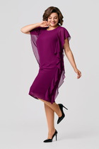 Платье полуприлегающего силуэта из ткани рошель. Горловина V-образной формы. Платье отрезное по талии, с эластичной тесьмой внутри. По эластичной тесьме проложены отделочные строчки. По детали переда средний шов. Детали спинки со средним швом. Рукав втачной, длинный. По окату слегка присборен. Длина рукава 3\4, по низу рукава настрочена эластичная тесьма которая делает сборку. Низ платья расширяется к низу. Длина платья ниже колена.
