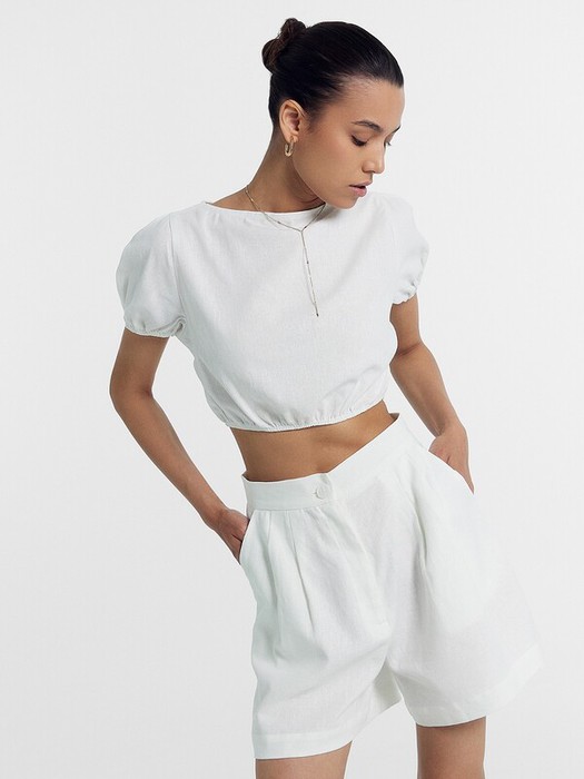 Шорты женские из ткани,  с посадкой на линии талии.