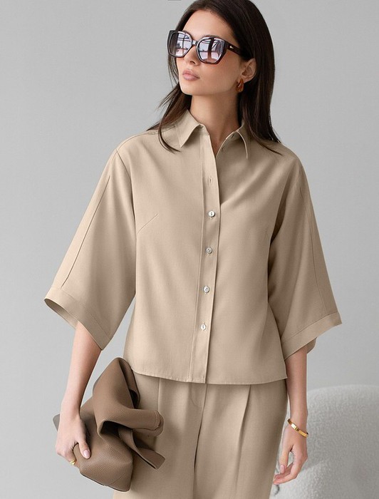 22.03 Vilatte Блузка с широкими рукавами 3/4 из плотного лиоцелла D29.354 светл