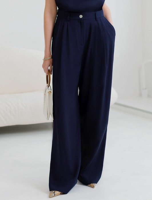 Совместные покупки Челябинск Женская одежда Брюки — 22.03 Vilatte Брюки палаццо с защипами из плотного лиоцелла D24.313 темно-синий