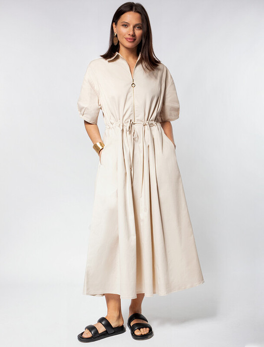 Совместные покупки Челябинск Женская одежда Платья — 22.03 Vilatte Платье на молнии из хлопка с эластаном D22.211 светло-бежевый